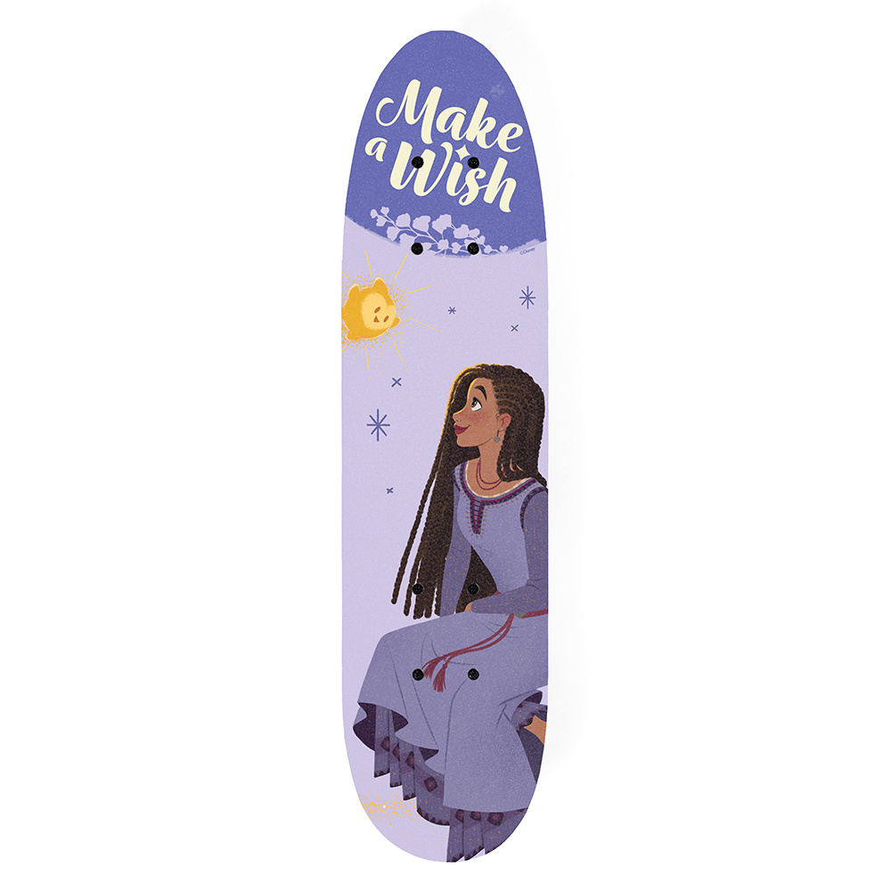 Dřevěný skateboard ozdobený módními vzory s licencí Disney, Marvel a Star Wars. Je ideální pro použití na chodnících, náměstích a městských uličkách. Deska je vyrobena z odolného dřeva a má protiskluzový povrch, který zajišťuje trakci a zvyšuje bezpečnost. Díky malé velikosti a hmotnosti je snadné jej přepravovat.