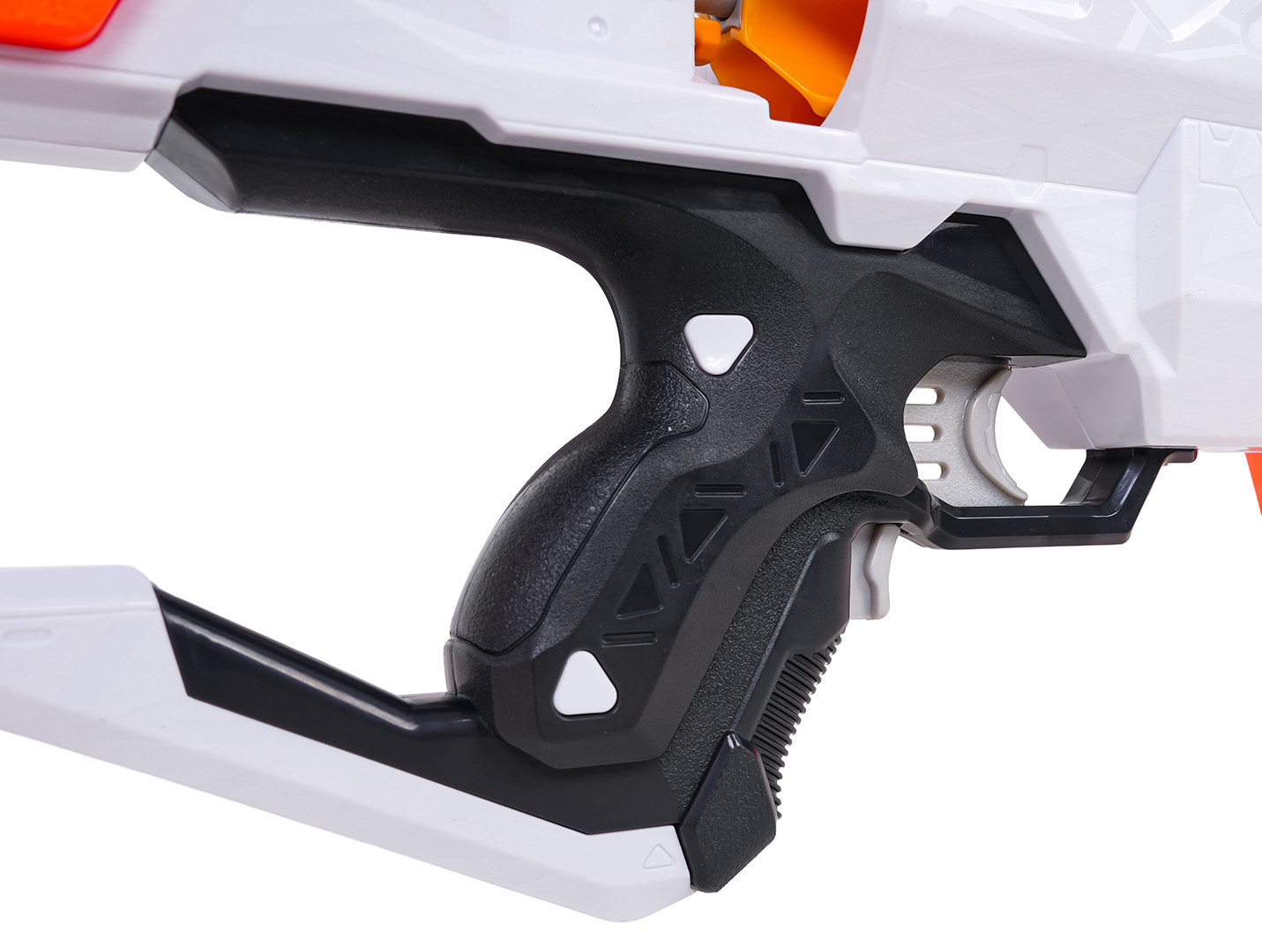 Funkce: - pro děti od osmi let, - vyrobený z vysoce kvalitních materiálů, - poloautomat, - buben pojme šest nábojů, je otevřený, což umožňuje rychlé přebití, - střely dokážou letět 25 metrů, - okénko pro odstranění zaseknutí. |
