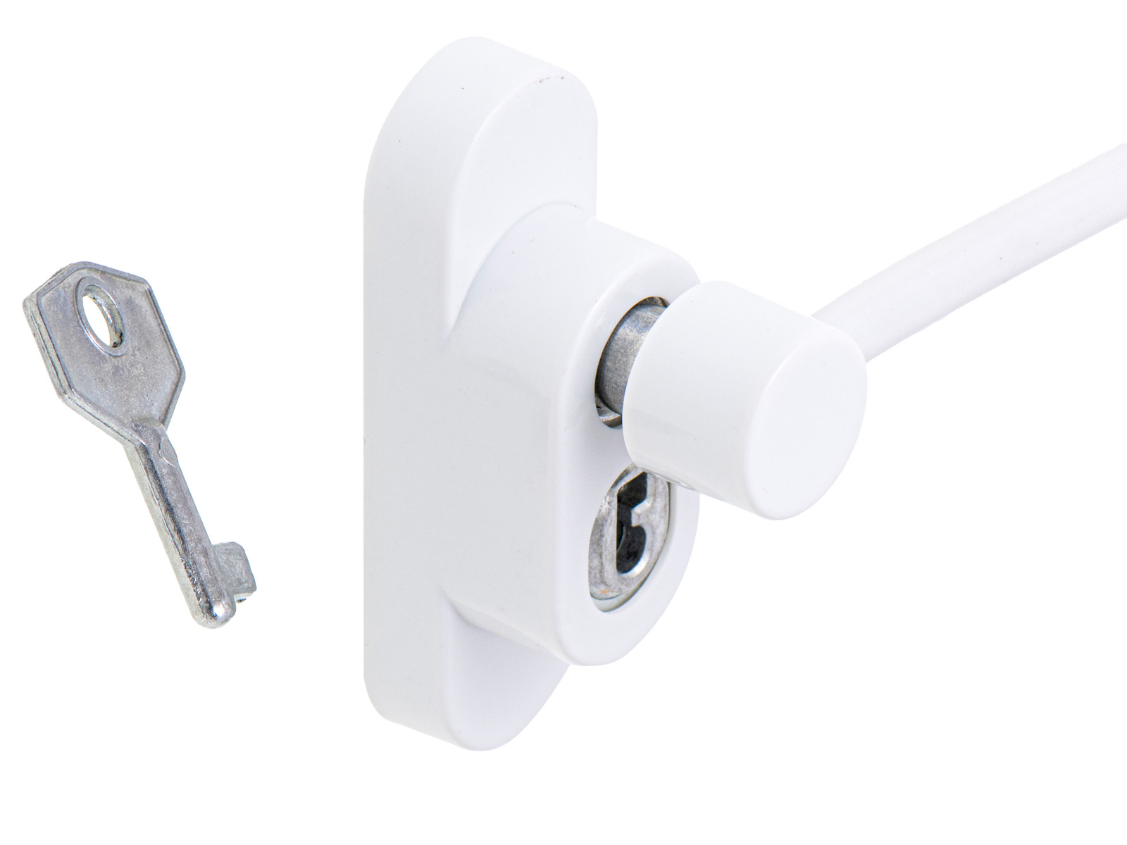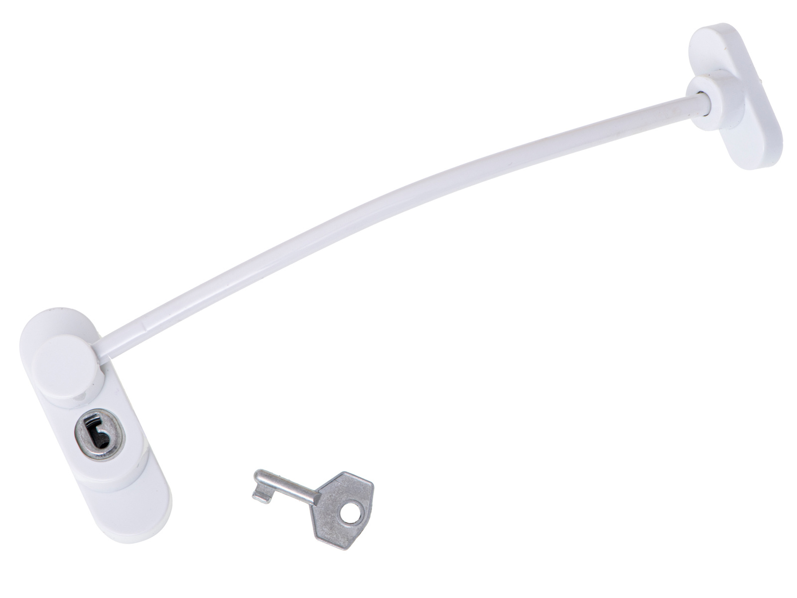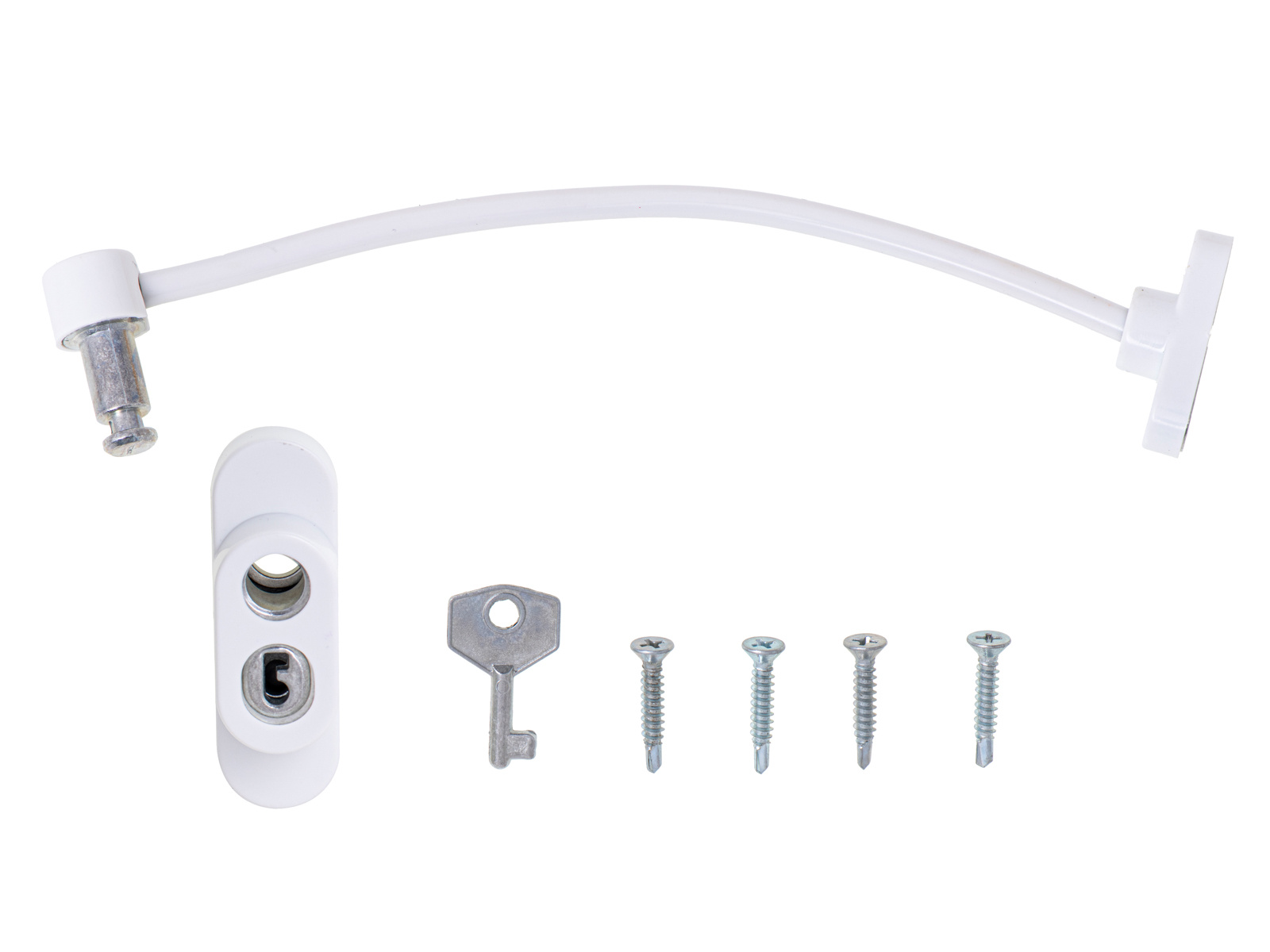 Zajistěte okno nebo balkonové dveře proti šikovným dětským ručičkám i nežádoucím návštěvám zvenčí. Zámek je vyroben z kovu pokrytého bílým plastem a gumou.