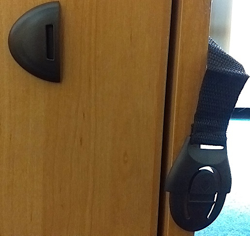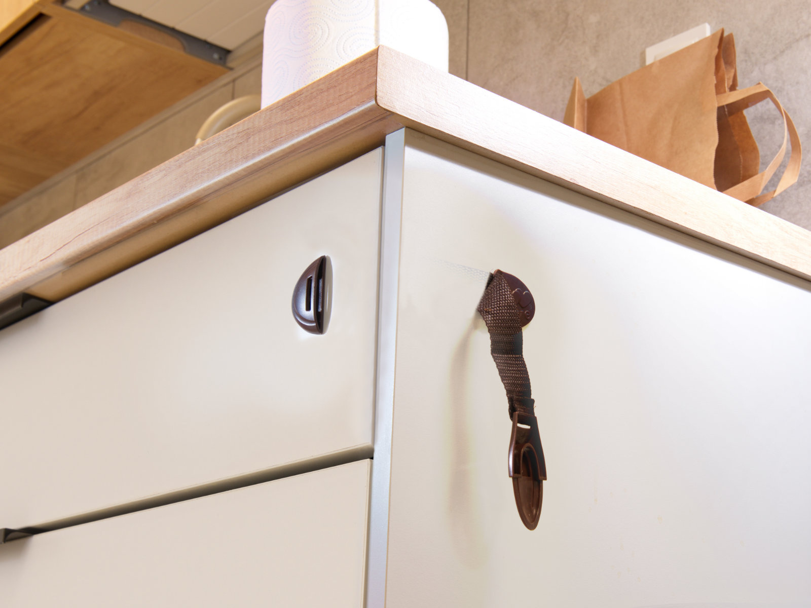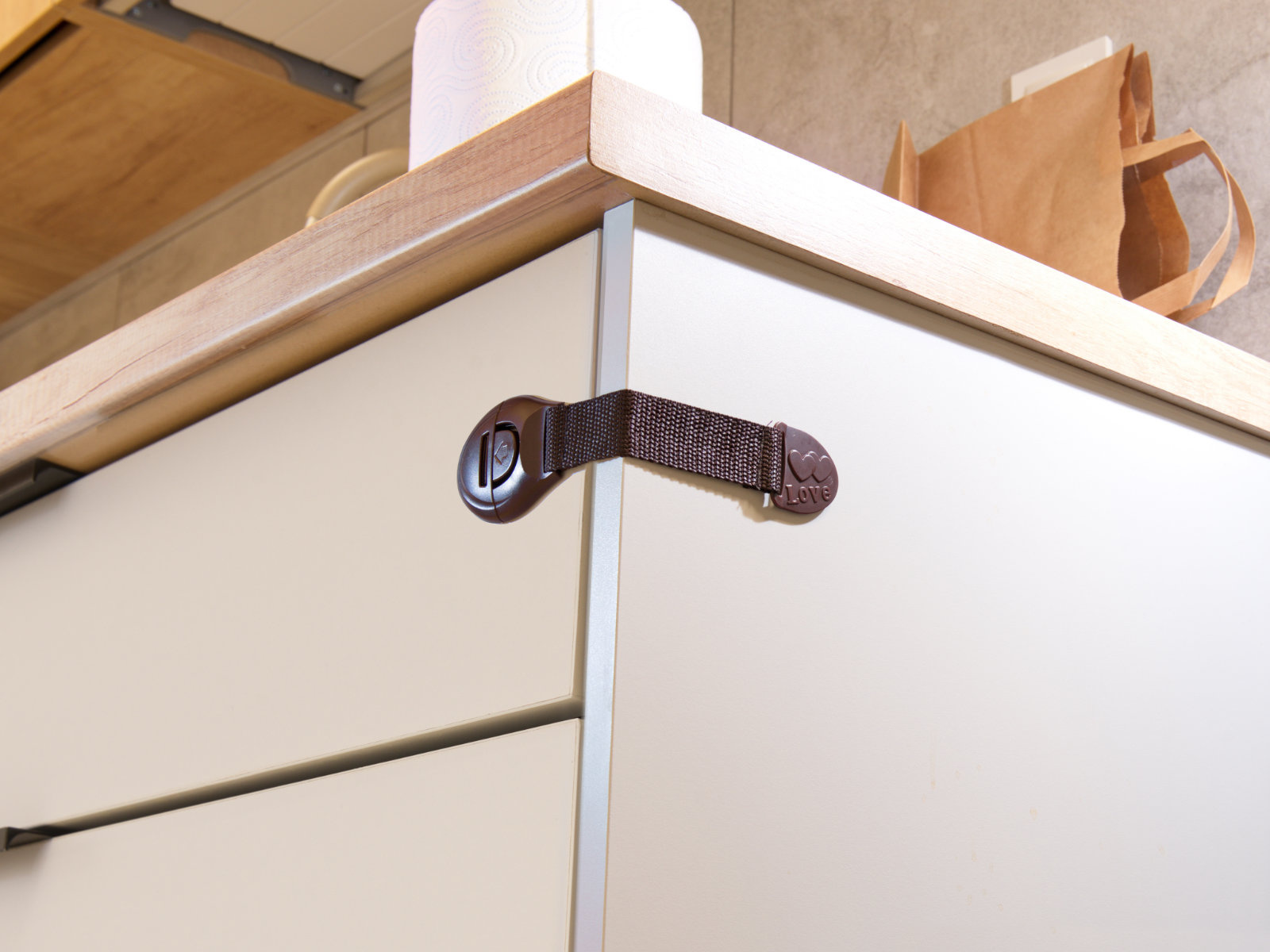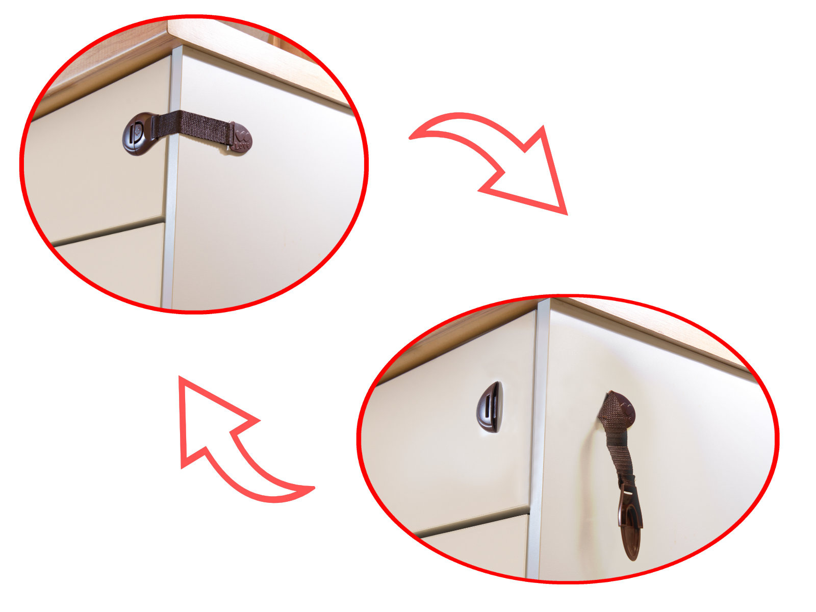 Uzamykací zařízení dveří, zásuvek, trouby atd. Připevňuje se pomocí oboustranné pásky. Blokovací zařízení účinně chrání prsty dítěte před skřípnutím. Hodí se pro všechny typy skříní.