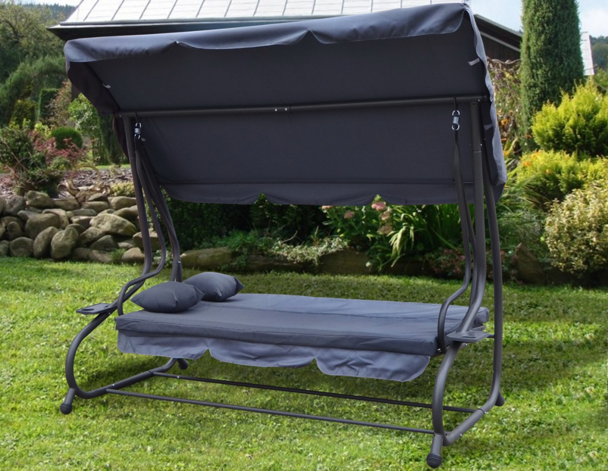 zahradní houpačka se skládacím sedátkem a nastavitelnou stříškou, šedá [8011 NEW SZ]