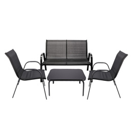 Sada kombinuje vynikající funkčnost s moderním designem. Zajímavé řešení pro ty, kteří ocení jemnost a praktičnost. Moderní a snadno udržovatelný zahradní nábytek z odolné textilní síťoviny, která zajišťuje stabilitu a výrazně přispívá k pohodlí při sezení. Díky své odolnosti vůči UV záření a klimatickým změnám jej lze ponechat venku a jeho snadné čištění znamená, že s vynaložením malého množství času a prostředků bude váš zahradní nábytek stále zářit jako nový. Sada pro vlastní montáž.