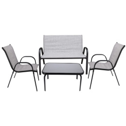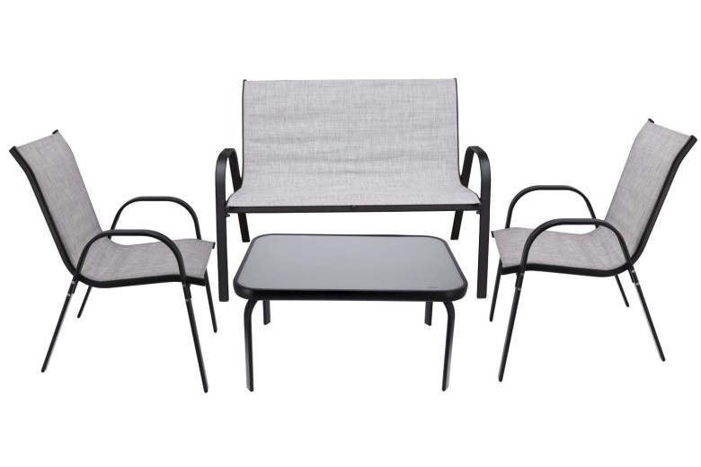 Sada kombinuje vynikající funkčnost s moderním designem. Zajímavé řešení pro ty, kteří ocení jemnost a praktičnost. Moderní a snadno udržovatelný zahradní nábytek z odolné textilní síťoviny, která zajišťuje stabilitu a výrazně přispívá k pohodlí při sezení. Díky své odolnosti vůči UV záření a klimatickým změnám jej lze ponechat venku a jeho snadné čištění znamená, že s vynaložením malého množství času a prostředků bude váš zahradní nábytek stále zářit jako nový. Sada pro vlastní montáž.