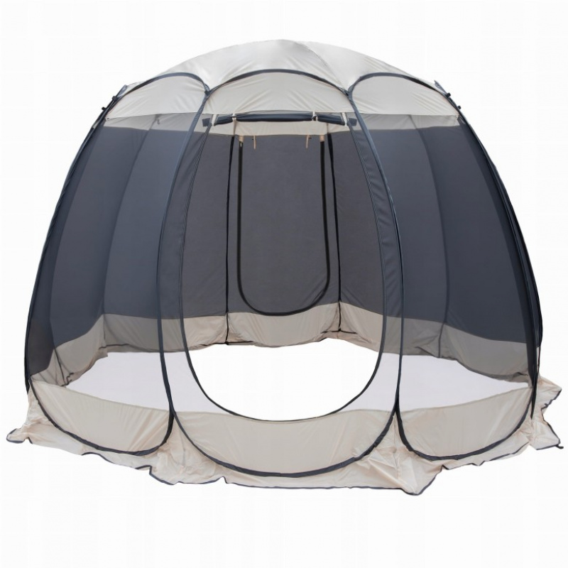 Pohodlný a prostorný pro pikniky, grilování nebo jen pro klidné odpoledne venku. Stan poskytuje dostatek prostoru pro celou rodinu nebo skupinu přátel.vysoká konstrukce umožňuje volný pohyb uvnitř stanu a zároveň zajišťuje dostatečné větrání a cirkulaci vzduchu.