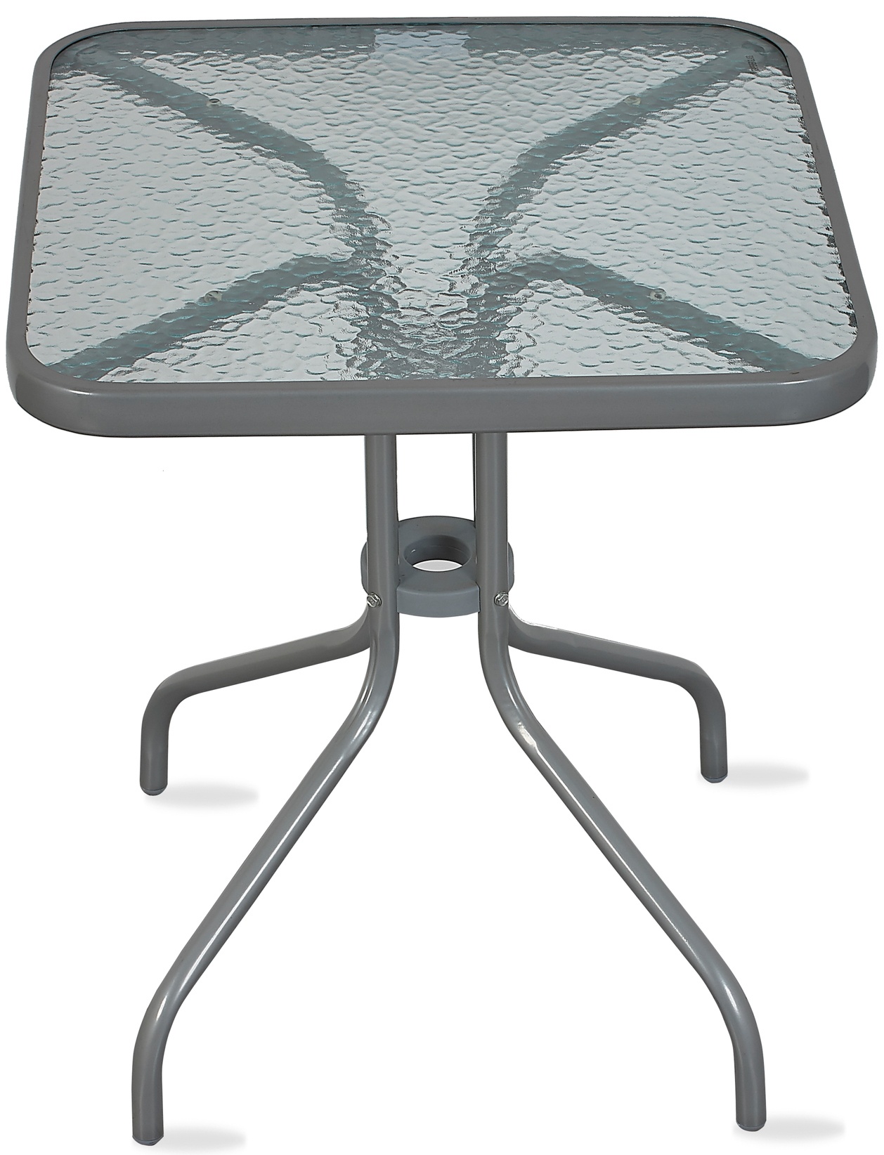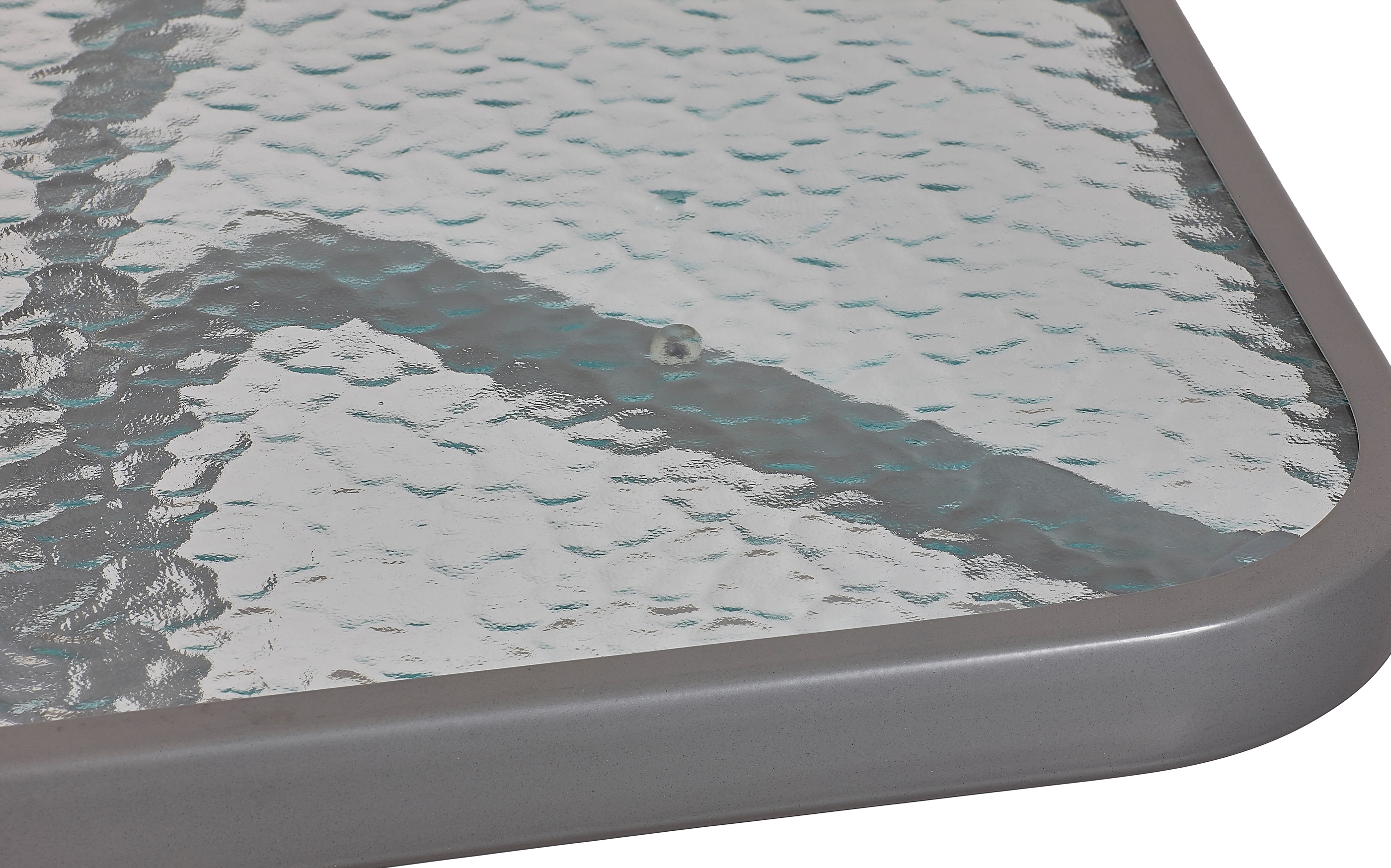Zahradní stůl BISTRO s pevným kovovým rámem a vroubkovanou skleněnou deskou v moderním designu, vhodný pro zahrady, terasy, kavárny, altánky, balkóny či pláže. Celý popis