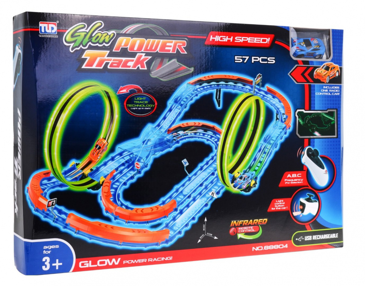 | | Velká dráha se dvěma smyčkami je vhodná pro děti od 3 let. Hračka je napájena bateriemi typu 1 x 3,7 V - auto (součástí balení) a bateriemi typu 2 x AAA - dálkové ovládání (nejsou součástí balení). Dráha je fluorescenční, zářící ve tmě. Vůz má podsvícení LED, jízda vytváří úžasné efekty. Přejeme vám, abyste se dobře bavili. |