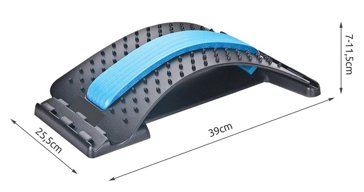 SPECIFIKACE -materiál: ABS a PP pěna; akupresurní masážní hroty: Ano; pohodlný pěnový popruh: Ano; tři úrovně nastavení: Ano; možnost použití v sedě i vleže: Ano; maximální zatížení: 150 kg; rozměry (výška/šířka/hloubka): 7-11,5/25,5/37cm; hmotnost: 0,53 kg; hmotnost v balení: 0,64 kg