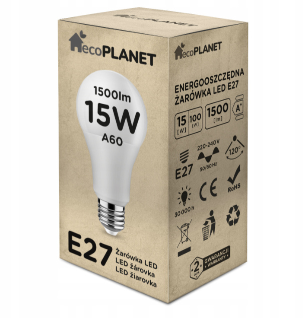 Wysoka wydajność 1500lm dla barwy neutralnej (odpowiednik 60W tradycyjnej żarówki halogenowej)