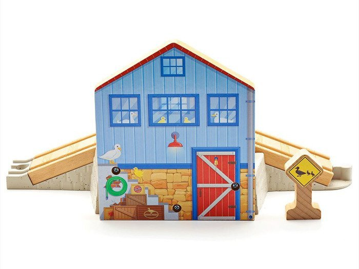 Stačí stisknout velké červené tlačítko ve tvaru sudu a kachna se po nastavené dráze rychle přesune směrem k farmě a zpět k rybníku.