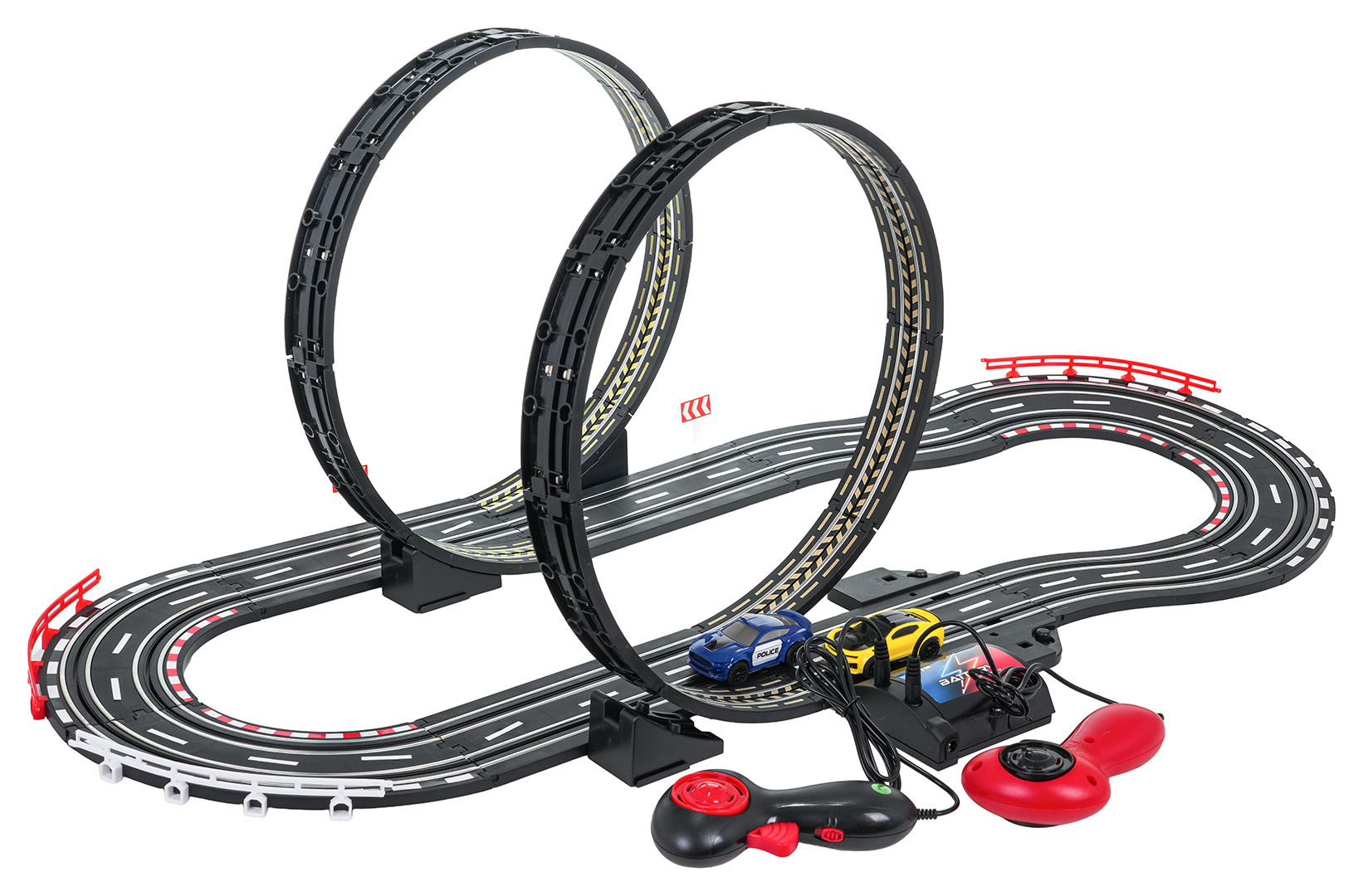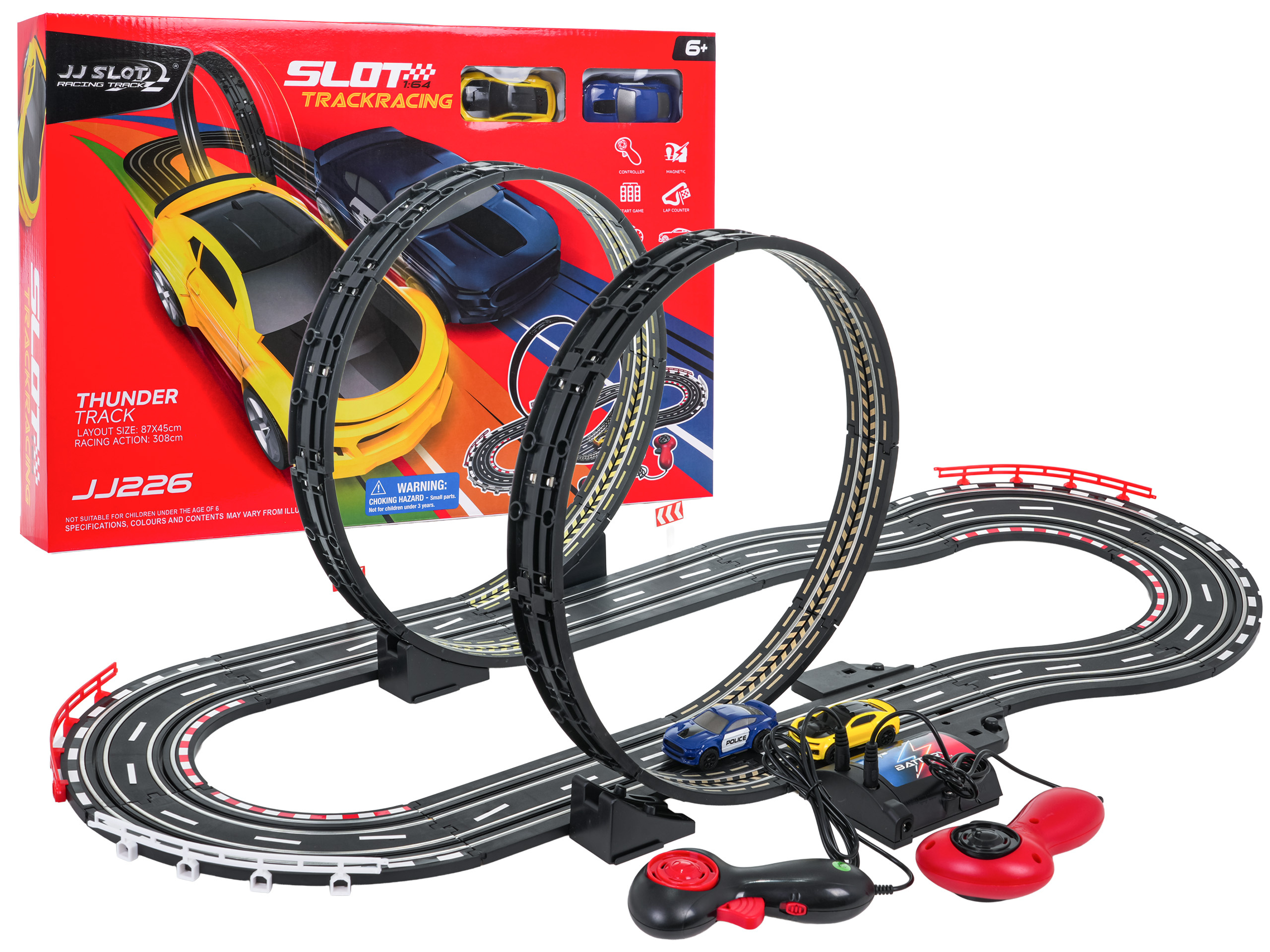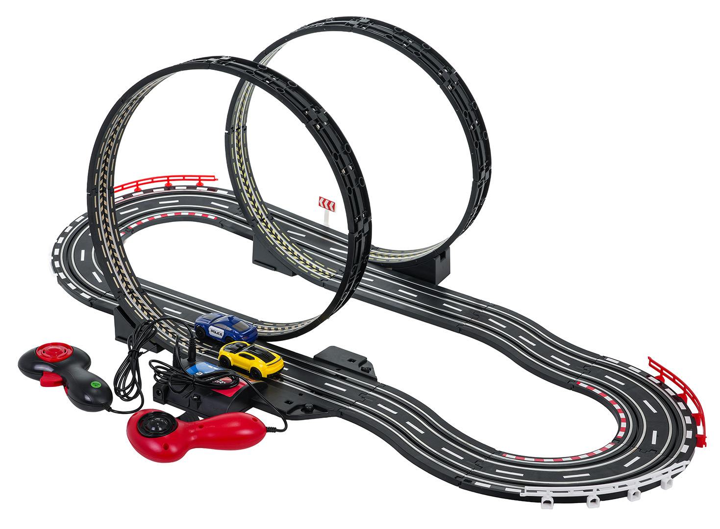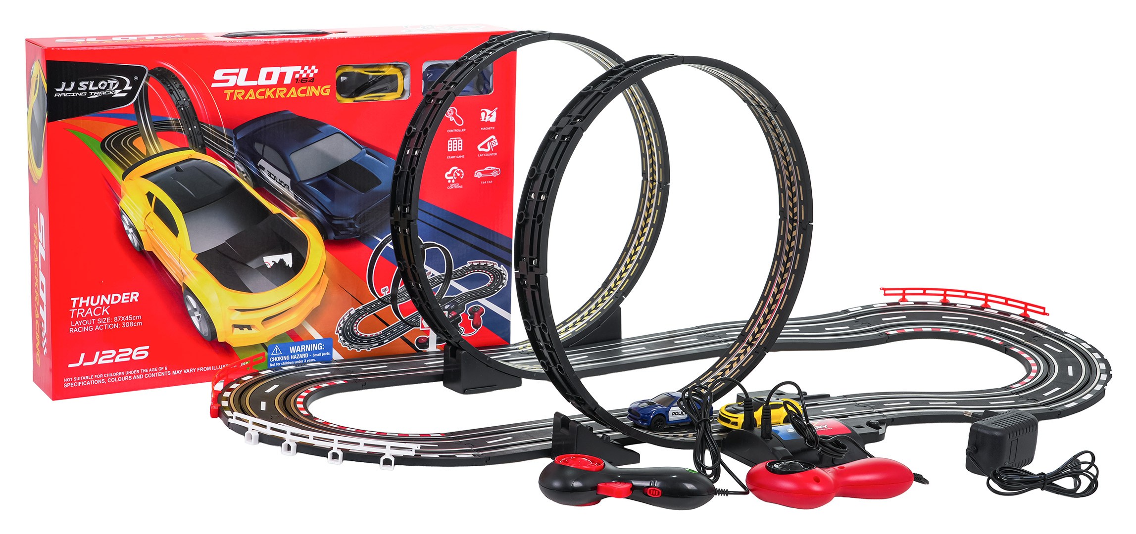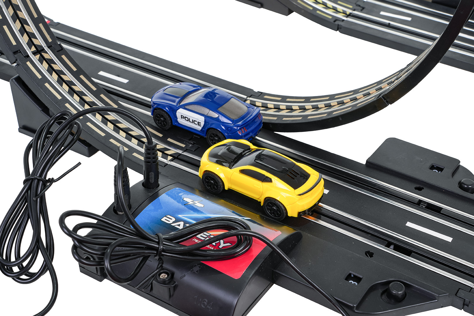 Závodní dráha Track Sport pro děti od šesti let. Dráha vyrobená z nejkvalitnějších odolných materiálů je napájena bateriemi typu 4 x AA 1,5V (nejsou součástí balení). Celková délka trasy je 308 cm. Na trati se nacházejí rovné úseky, ostré zatáčky a 2 smyčky o 360 stupňů. Na ostrých zatáčkách se navíc nacházejí zábradlí, která zabraňují vypadnutí vozidla z dráhy. V sadě se nacházejí dvě vozidla a dva piloti.