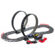 - trať obsahuje rovné úseky, smyčky 360 stupňů, zatáčky, spirály,