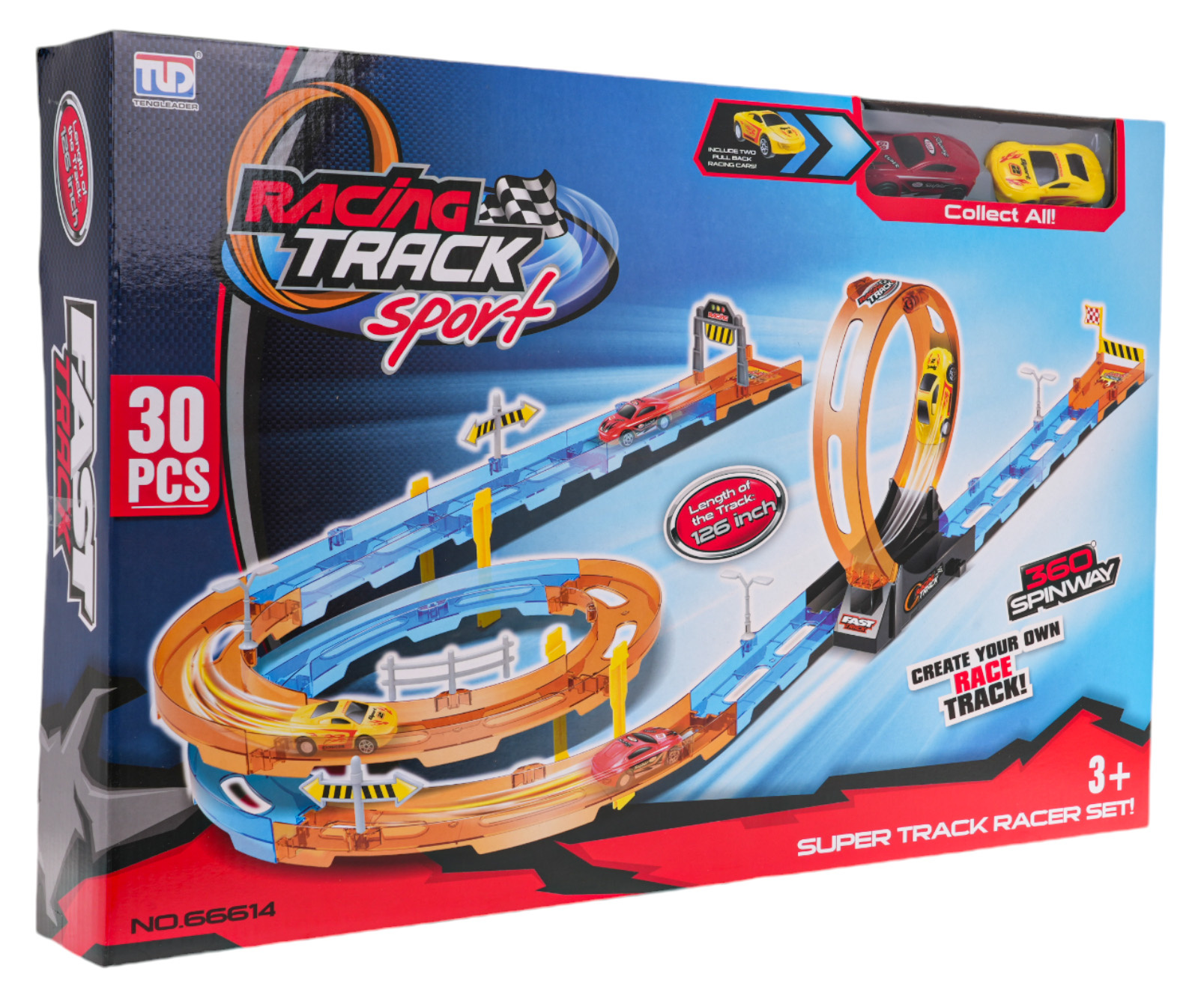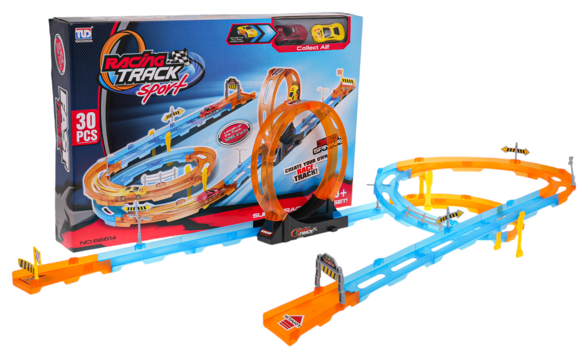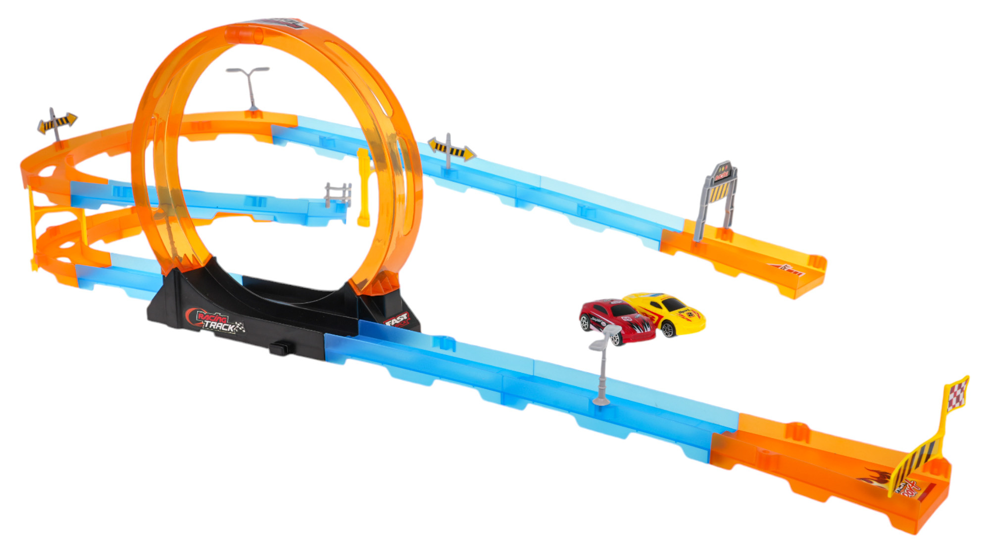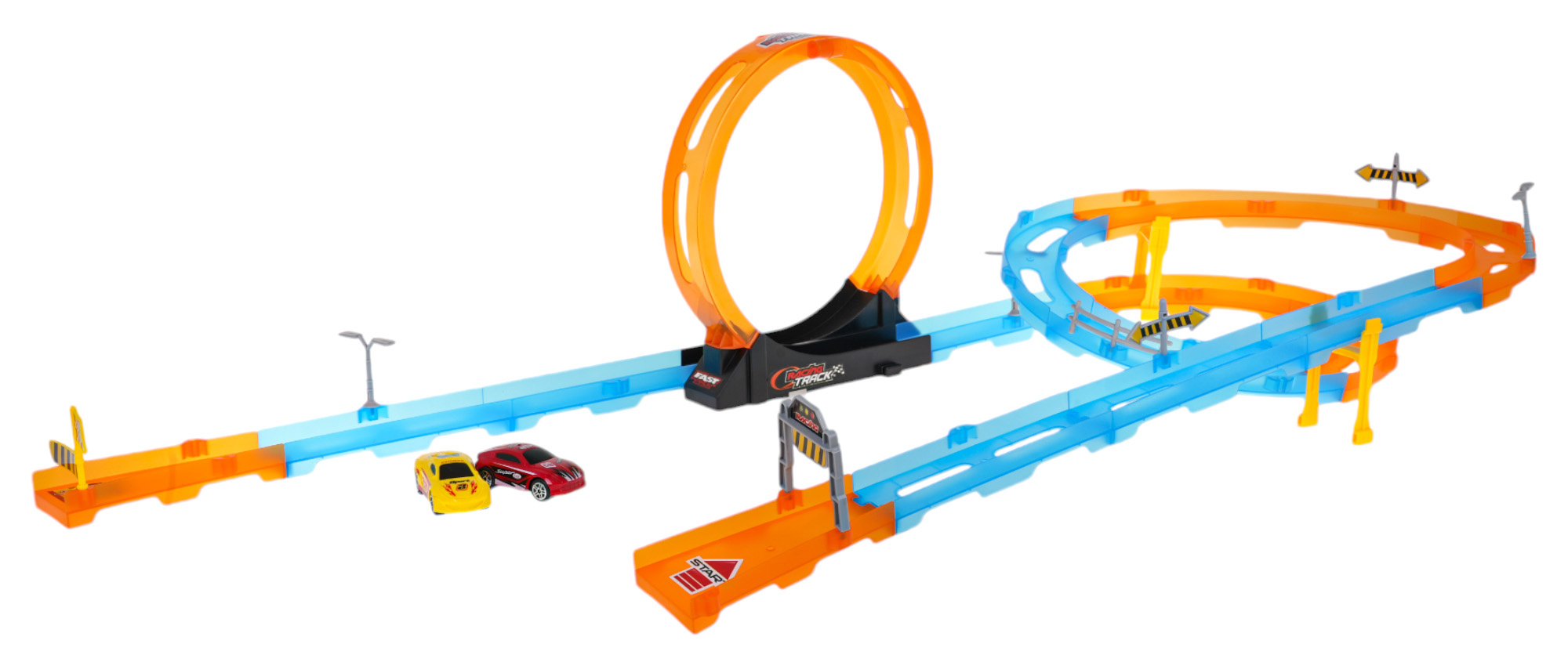 Velká, extrémní závodní dráha s ostrými zatáčkami, smyčkami a dvěma autíčky v sadě, je určena pro děti od 3 let. Sada se skládá z 30 prvků pro vlastní montáž. Na trati se nacházejí rovné úseky, ostré zatáčky s bariérami zabraňujícími vypadnutí vozidla z trasy, dvě úrovně a také smyčka o 360 stupňů. Vozidla v sadě mají zpětný pohon.