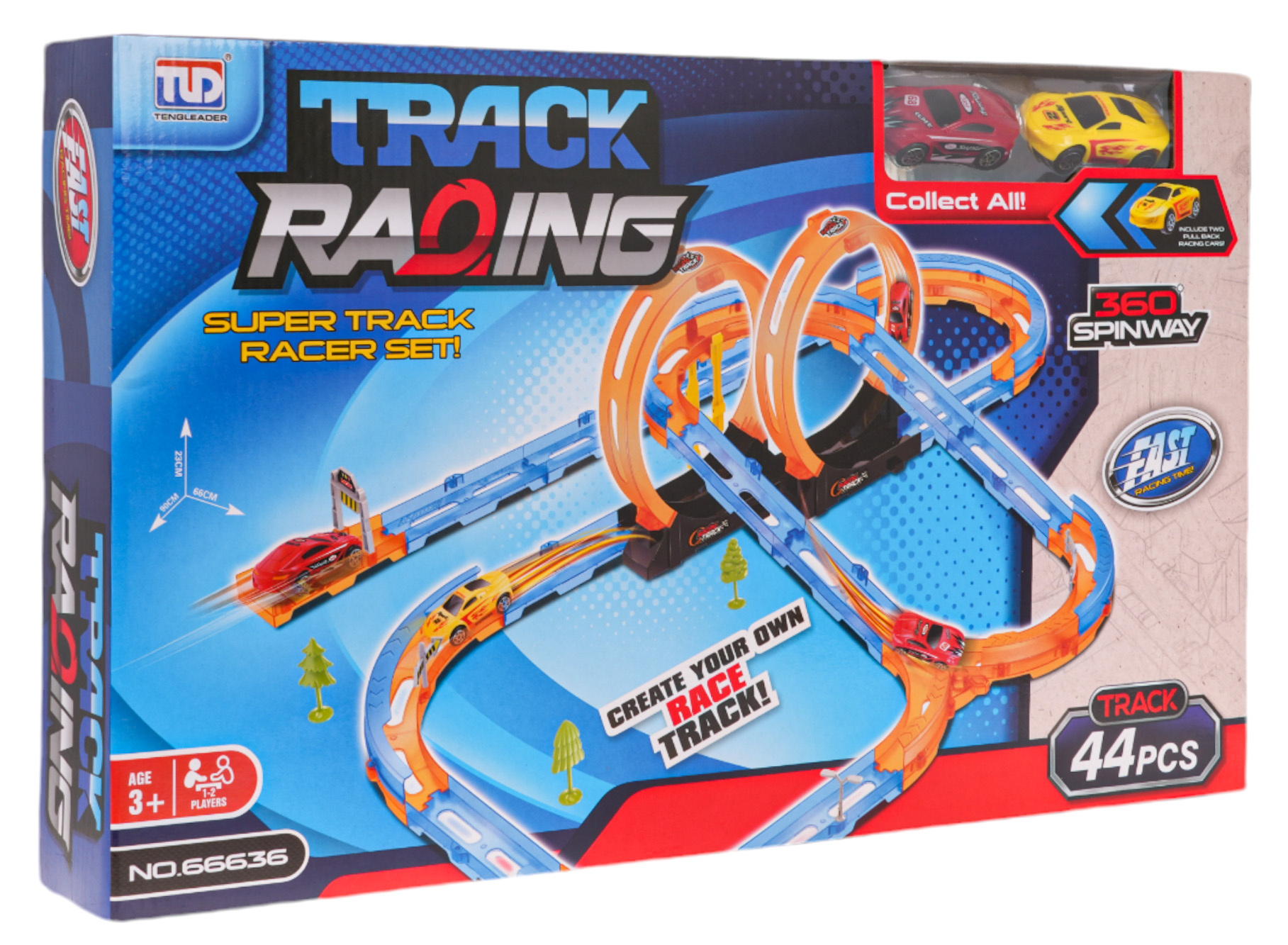Velká, extrémní závodní dráha s ostrými zatáčkami, smyčkami a dvěma rychlými autíčky v sadě, je určena pro děti od 3 let. Sada se skládá ze 44 prvků pro vlastní montáž. Na trati se nacházejí rovné úseky, ostré zatáčky s bariérami zabraňujícími vypadnutí vozidla z trasy, a také dvě smyčky o 360 stupňů. Autíčka mají pohon pull back.