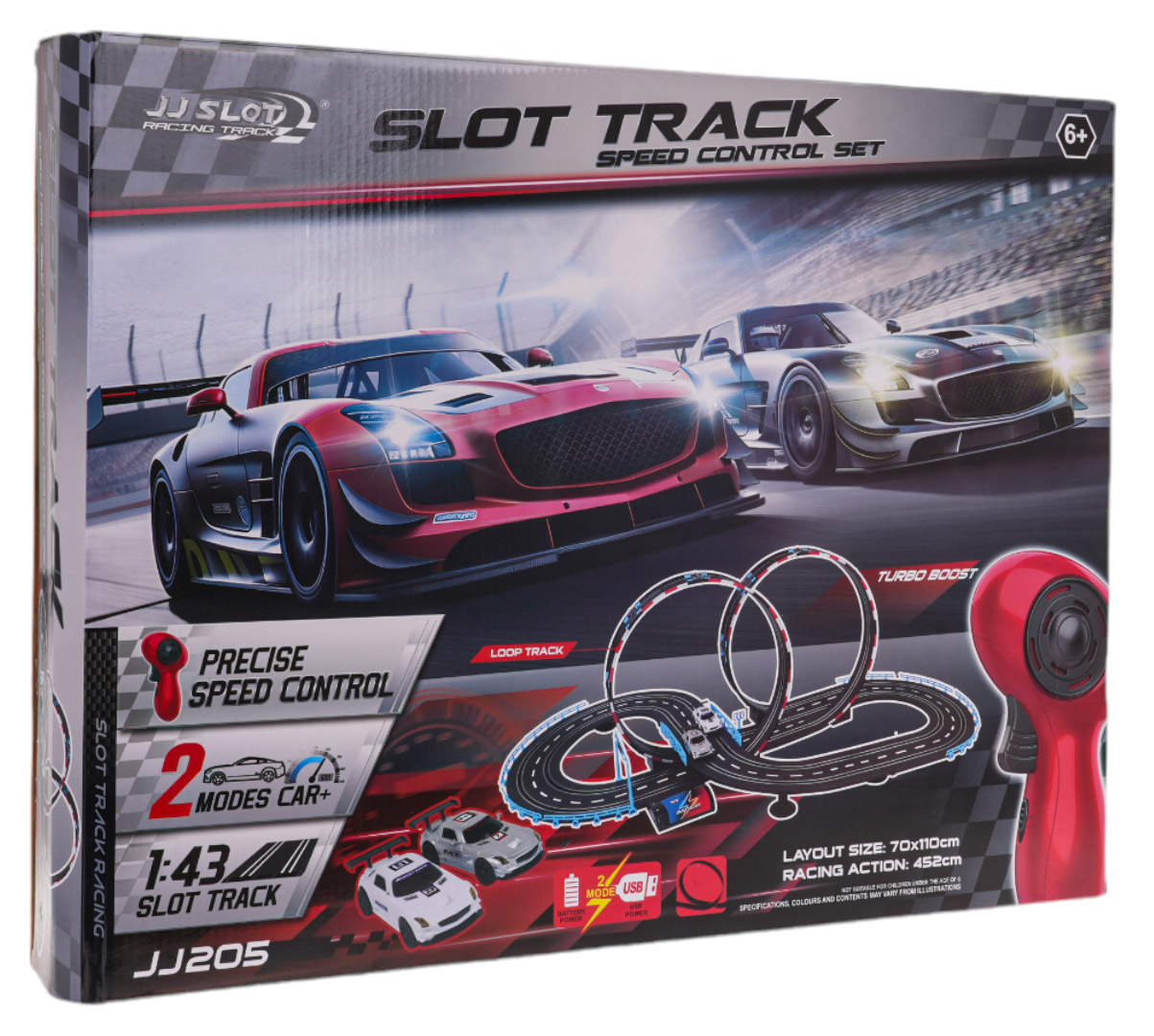 Jednotlivé konstrukční prvky umožní postavit dráhu s ostrými zatáčkami, spirálami a rovnými úseky, a to vše proto, aby maximálně zatraktivnily zábavu a přidaly celé hře emoce. V sadě se nacházejí dvě vozidla. Sada ideální pro děti od 6 let. Hračka je napájena bateriemi typu 6 x AA 1,5 V (baterie nejsou součástí balení).
