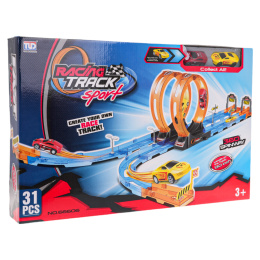 „Ostra Pętla“ je závodní dráha , která nabízí dvojnásobné vzrušení a skvělou zábavu pro děti od 3 let . Sada s 31 dílky , včetně dvou aut, umožňuje soutěžit až dvěma lidem současně .