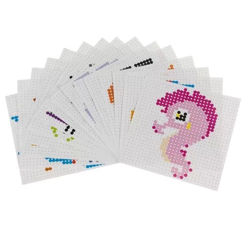 2 FORMULÁŘE + ŠABLONY- v krabici je kompletní sada pro skvělou zábavu. 2 čtvercové formy a 15 hotových vzorů se zvířátky donutí dítě ochotně aranžovat a hrát si s korálky.Vytvoří barevné obrázky a možností je mnoho. Můžete tvořit podle šablony nebo použít vlastní fantazii.Vytvořením několika vrstev šablony můžeme vytvořit 3D postavy!