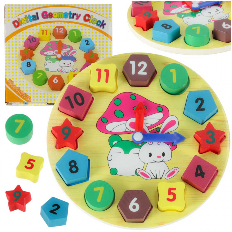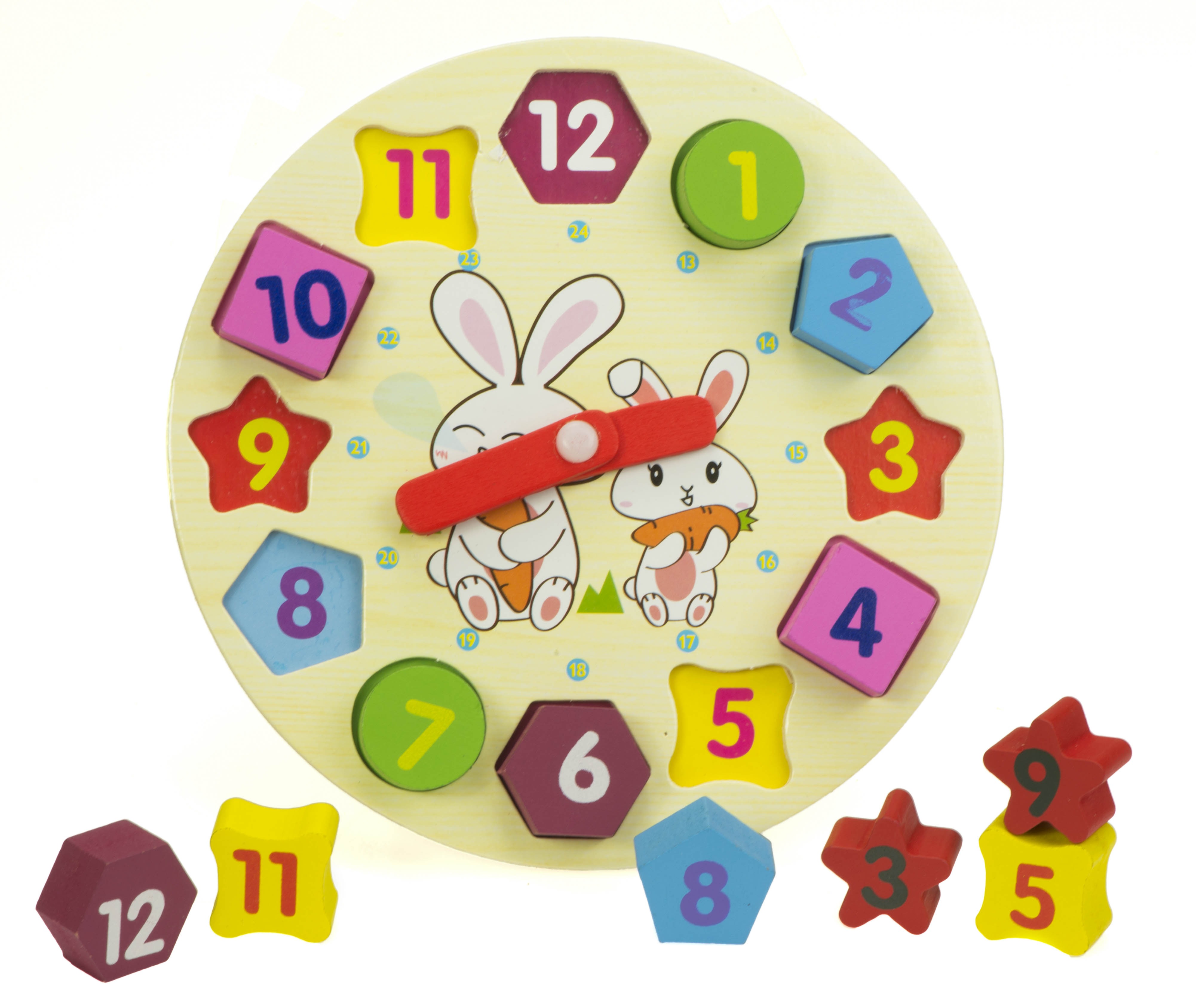 - Čísla jsou dřevěné barevné špalíky, které je třeba nasadit do otvorů v ciferníku
