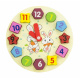 Hodiny z přírodního, světlého dřeva s barevnou aplikací: vzor králíka