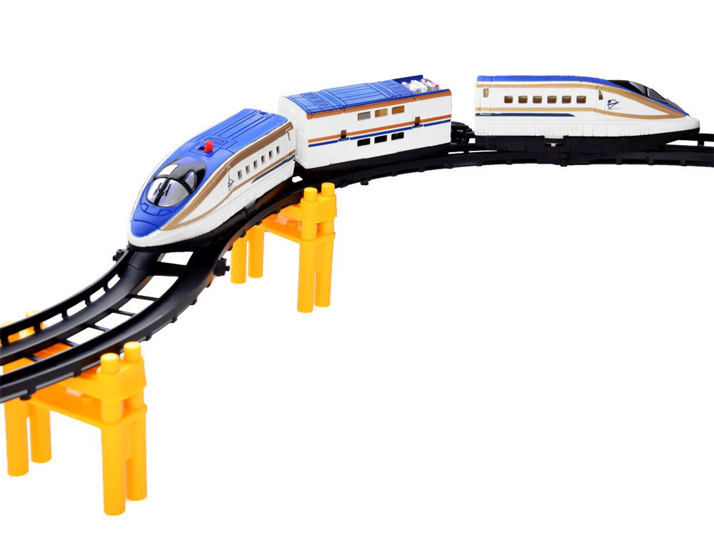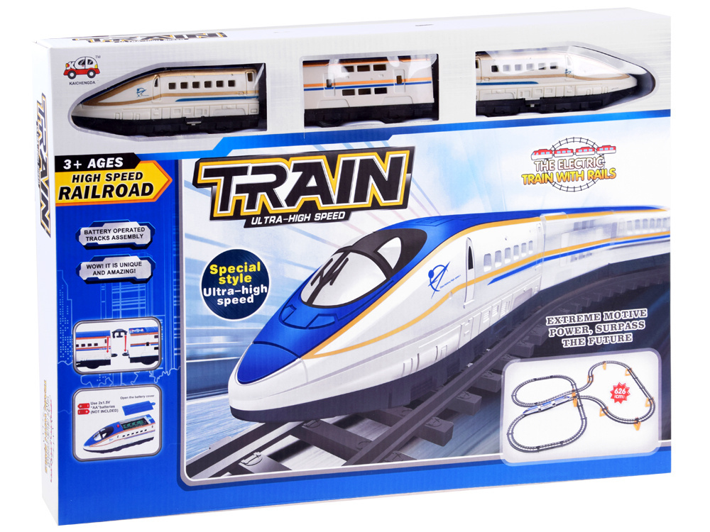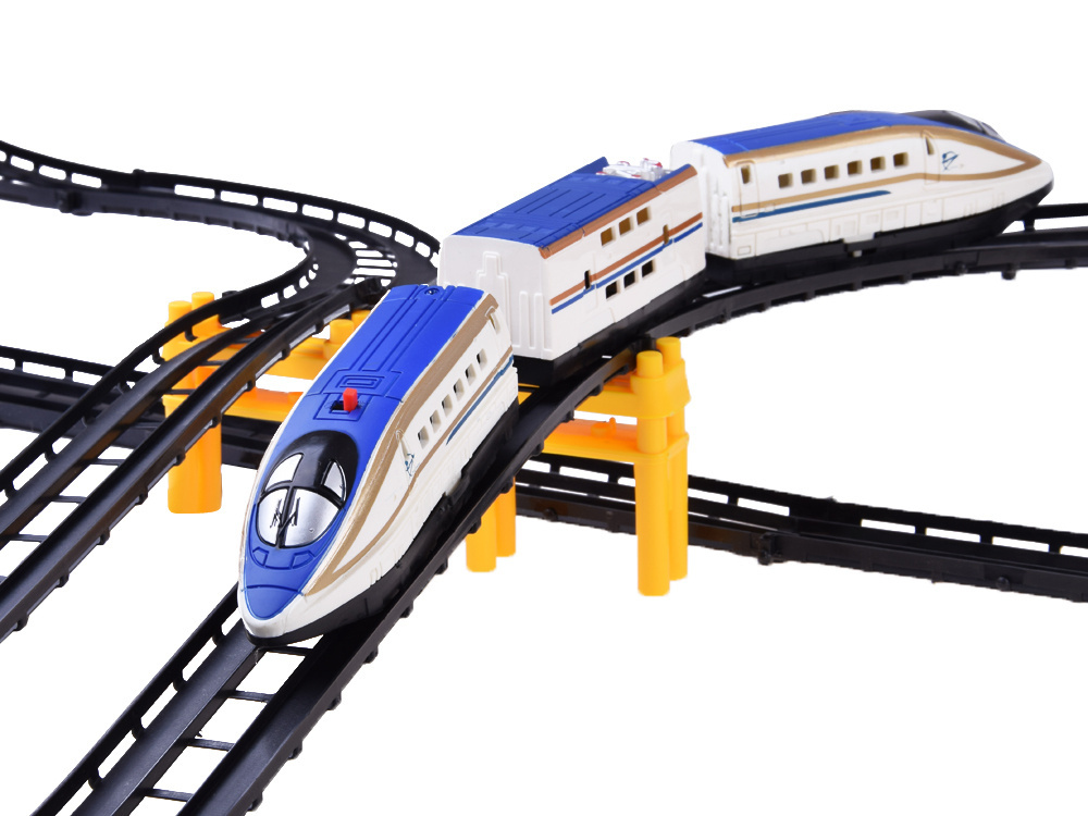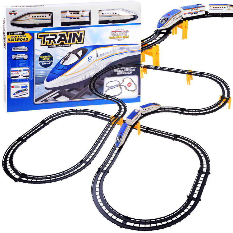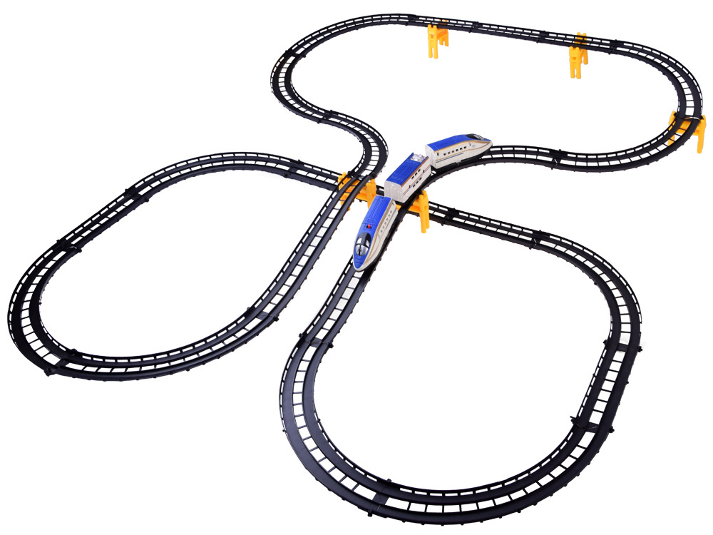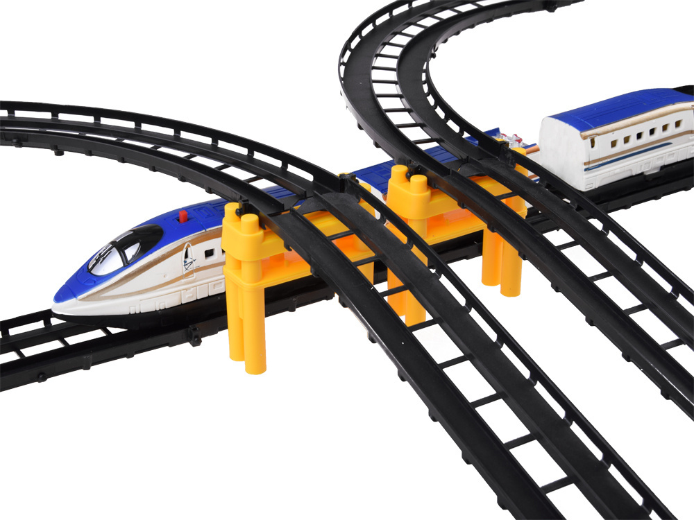 Součástí sady jsou také plastové koleje. Ve složeném stavu lze dosáhnout maximální délky trasy 626 cm. Sada je navíc vybavena komponenty pro stavbu viaduktů. Koleje jsou navrženy tak, aby vlak nespadl z trati.