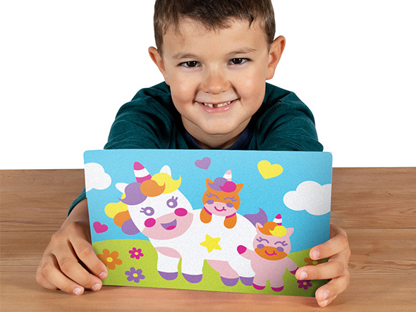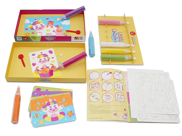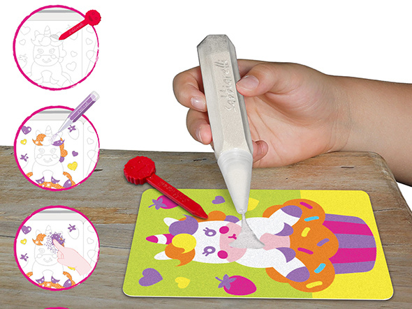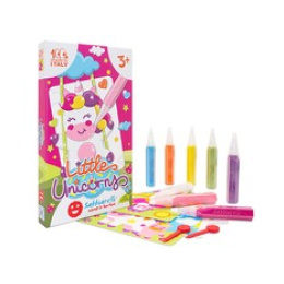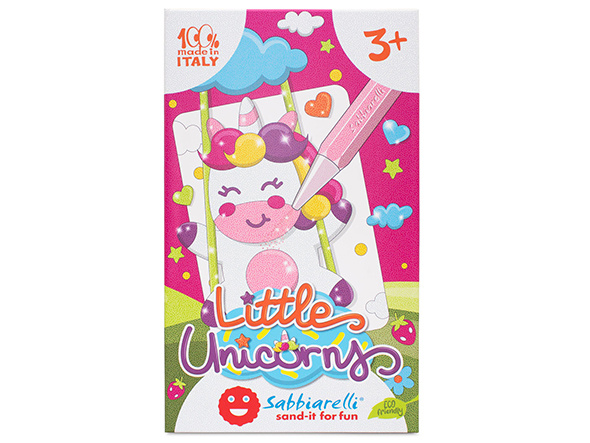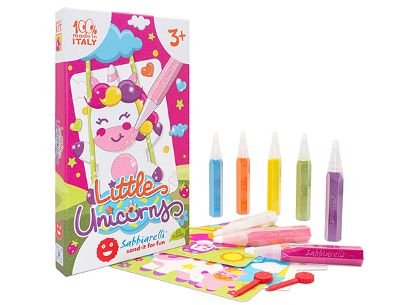 Velmi nápaditá, kreativní a jedinečná výtvarná sada s jednorožci pro menší děti k vybarvování kouzelným pískem z mletého mramoru. Sabbiarelliho Kouzelné omalovánky s pískem jsou výtvarnou sadou určenou pro děti, v níž je přímý kontakt s pískem vzdělávacím aspektem ve vztahu k použitým materiálům. Práce s pískem při vybarvování obrázků je pro děti nejen mimořádně zábavná, ale umožňuje jim také rozvíjet fantazii a vytvářet krásné obrázky bez použití nůžek, lepidla nebo barev. Tato kreativní sada pro chlapce a dívky byla vyrobena pouze z bezpečných a netoxických materiálů. Sabbiarelliho omalovánky do písku jsou ideální pro hraní s přáteli a také jako skvělý nápad na dárek.