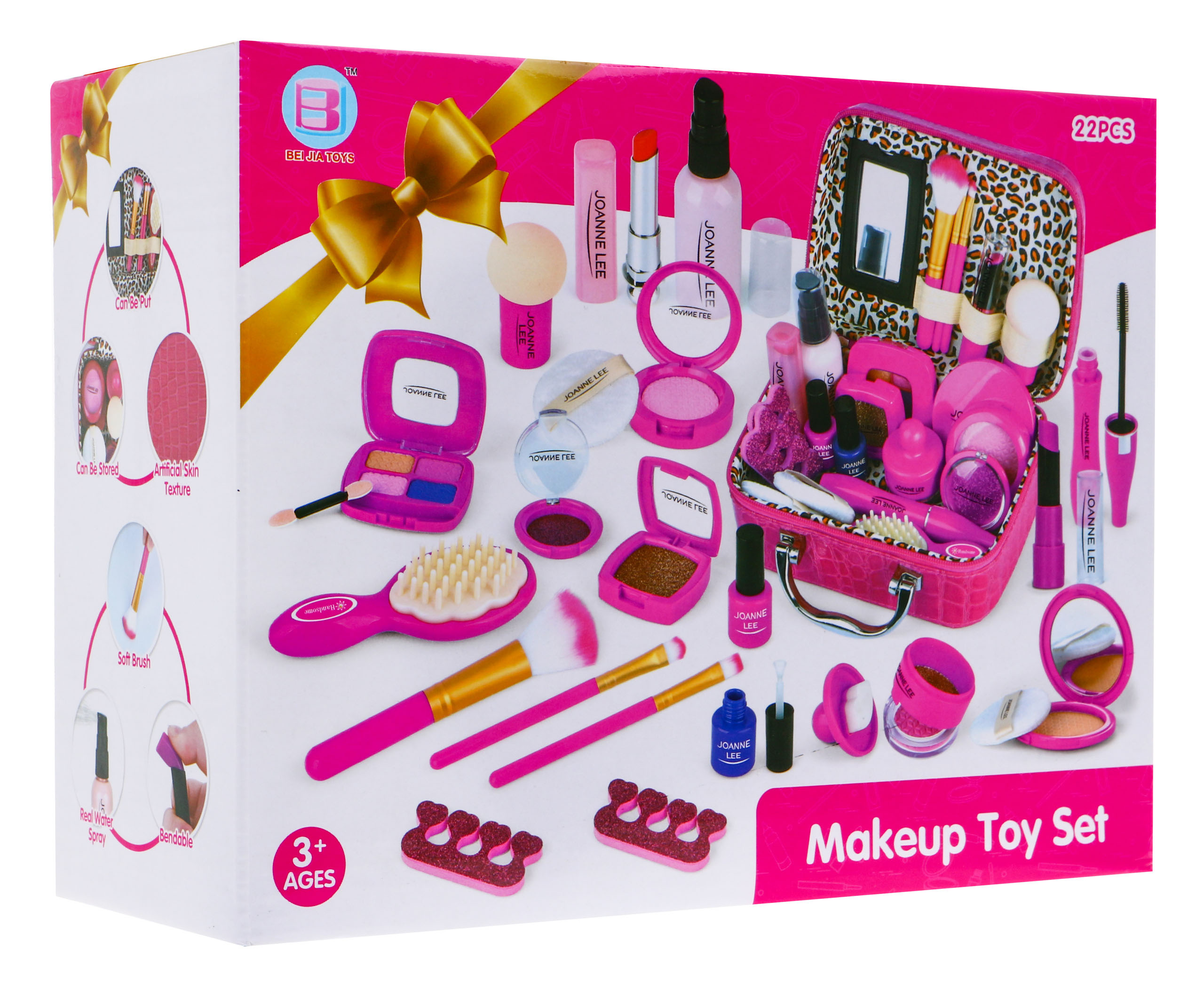 Tato sada s taštičkou naplněnou až po okraj bezpečnými doplňky pro líčení je hračkou pro děti od 3 let. Elegantní a velký kufr je vyroben z měkké ekokůže. Má pohodlnou rukojeť, čtyři nožičky na spodní straně a vnitřní zrcadlo. Zapíná se na zip. Celá sada se skládá z 22 položek, obsahuje kosmetiku, jako jsou stíny, třpytky, rtěnky, laky na nehty, řasenky a mnoho dalšího. Kosmetika je sice atrapa, ale vypadá realisticky, neotírá se a pokožka dítěte je v bezpečí. Hra s kosmetikou rozvíjí kreativní myšlení, procvičuje představivost a pomáhá soustředění.