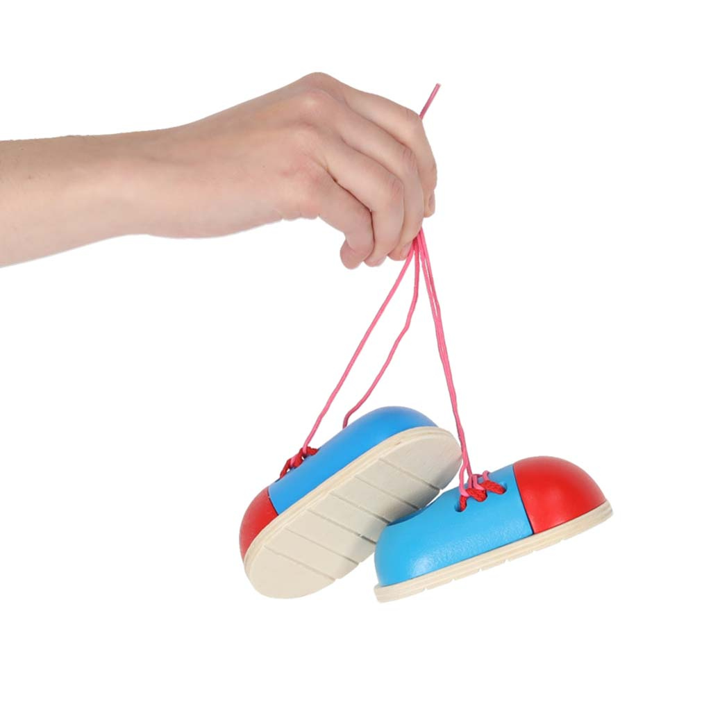 Dřevěné šněrovací botičky, na které se dítě učí správně si zavazovat tkaničky. Velmi vhodné pro manuální zručnost a procvičování trpělivosti dítěte.