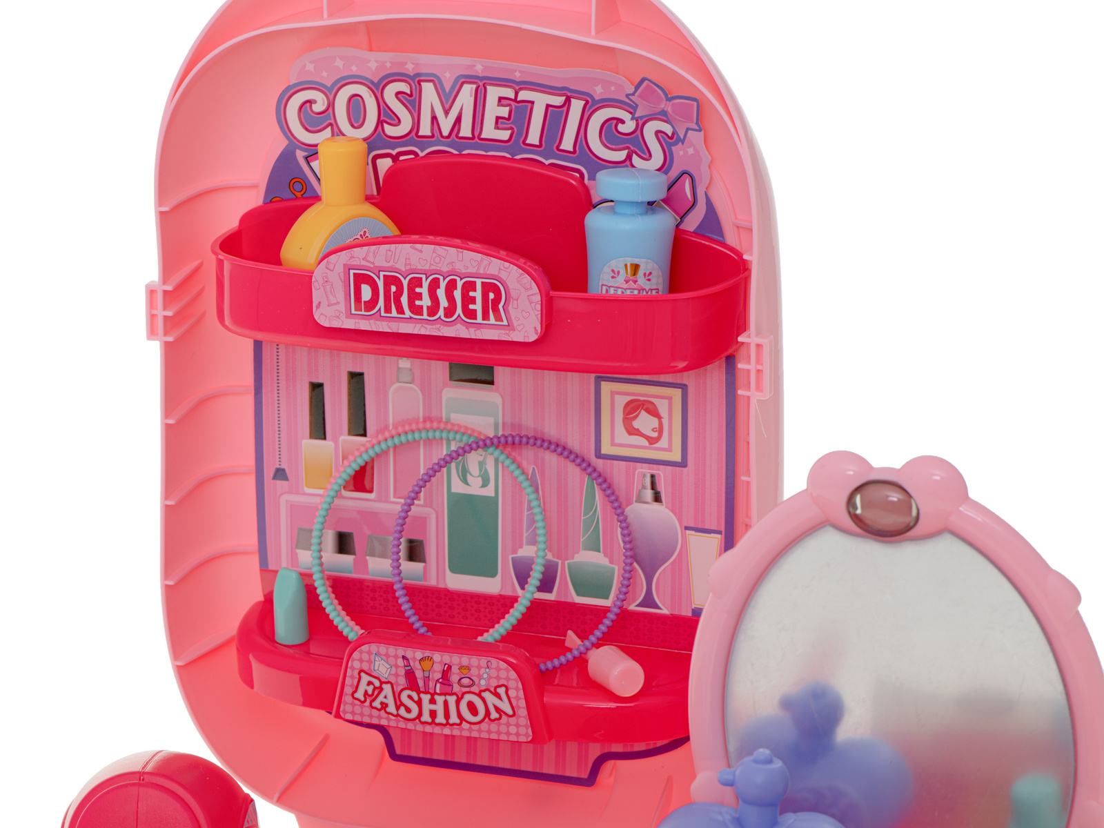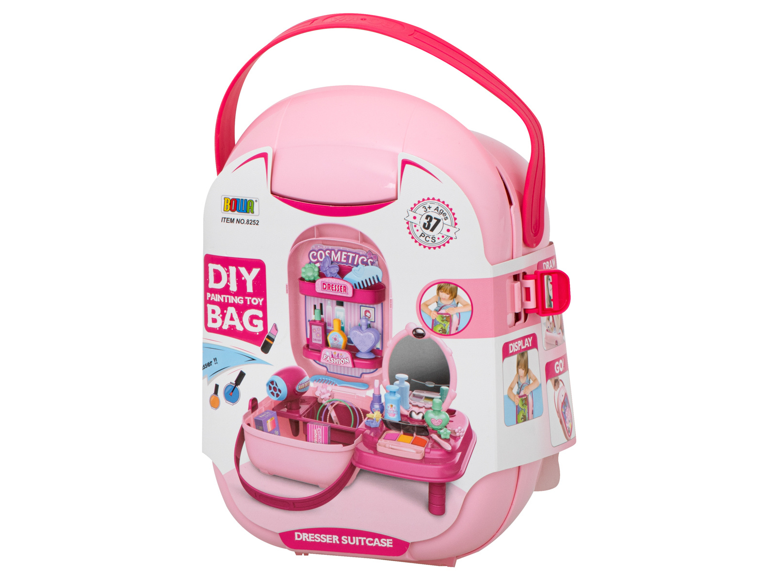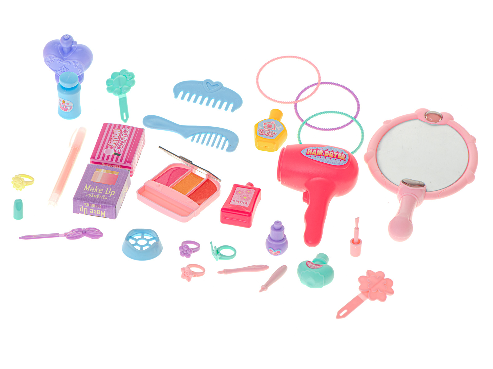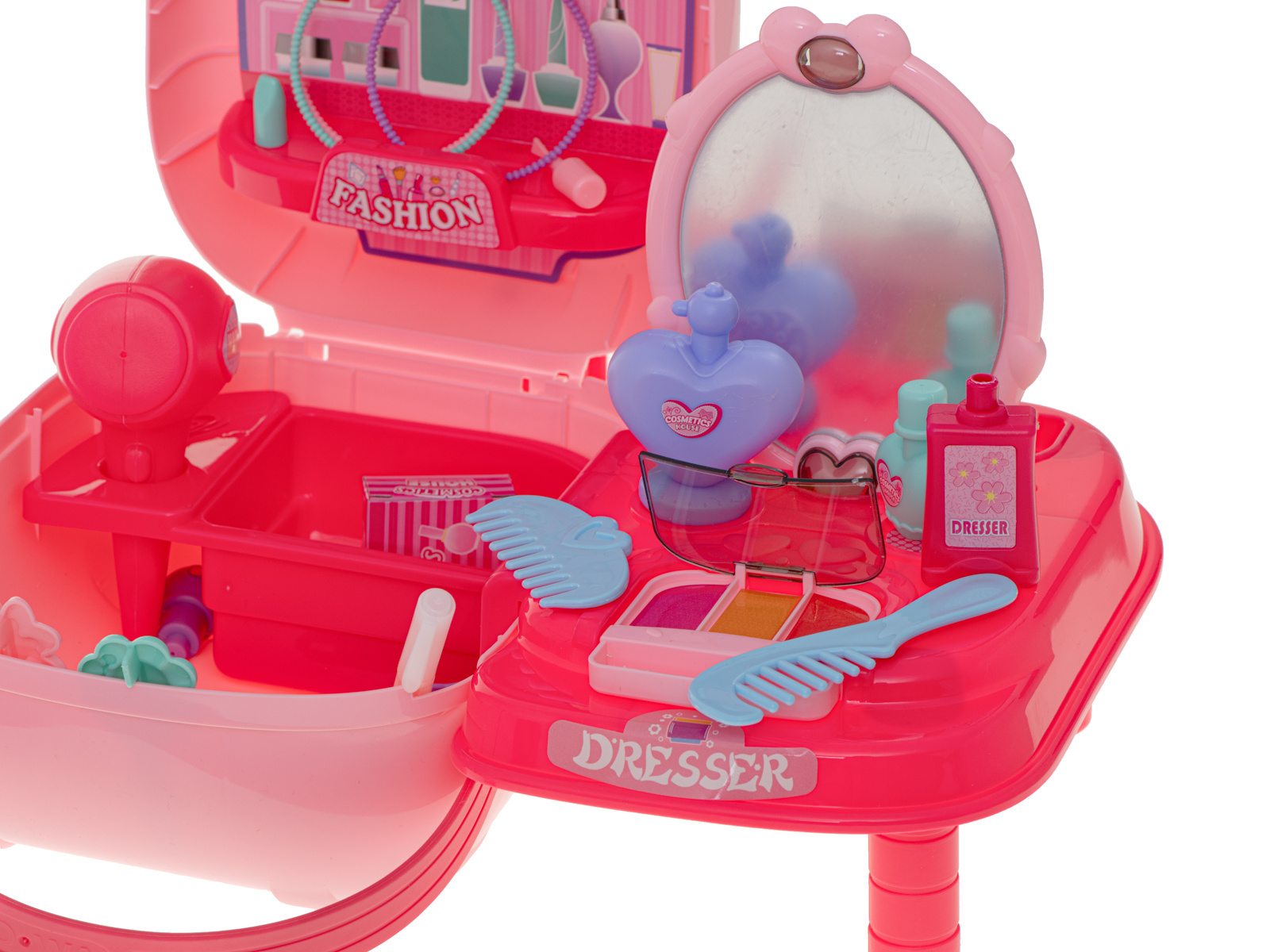 Krásný plastový kufřík ukrývá mnoho pokladů, které potěší každou malou slečnu nebo budoucí kadeřnici. Sponky, náramky, fény a hřebeny jsou nezbytným vybavením každého profesionálního kosmetického salonu.