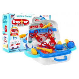 | Lékařská sada s nástroji pro děti od 3 let. Vybavení sady: - přenosný skládací kufřík - ambulance na kolečkách, - stolní deska s imitací MRI, - 2 boční police, - věšák na lékařské potřeby, - brýle, - nůžky, - nůžky s kleštěmi, - teploměr, - injekční stříkačka, - pinzeta, - spekulum, - zrcátko, - kladívko | |