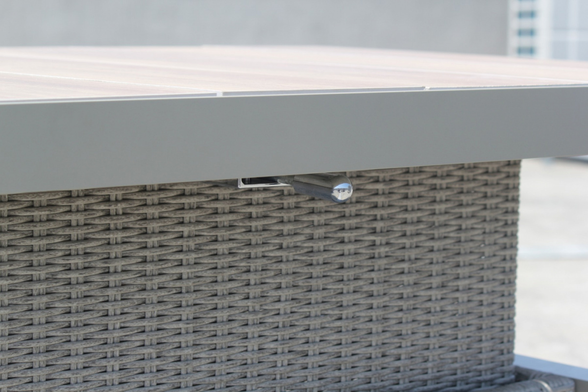 Šedý rodinný zahradní nábytek Techorattan + velká rohová postel + nastavitelný stůl + 13 polštářů