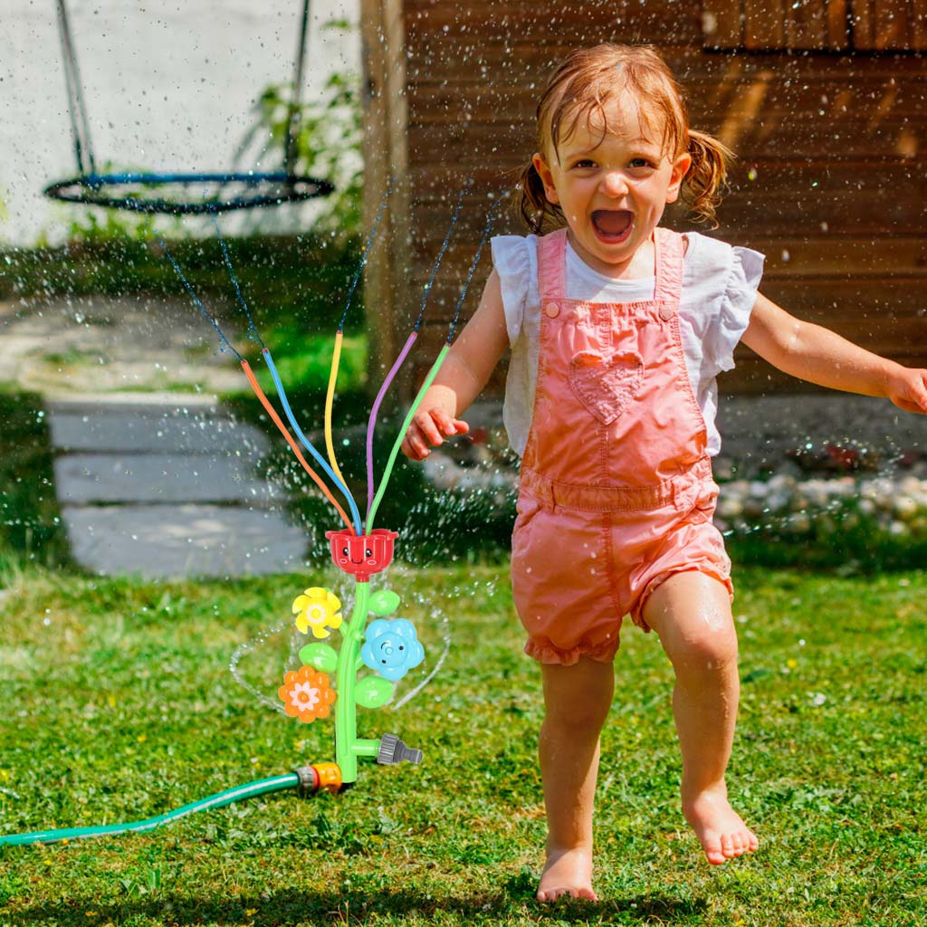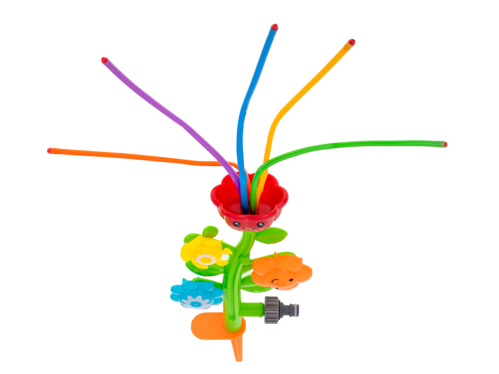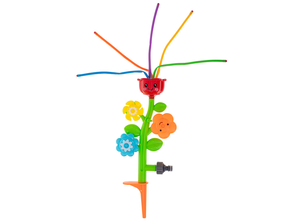 Na rozdíl od klasických zahradních postřikovačů s přesně určeným směrem postřiku, se tato dětská fontána v designu veselých kvítečků otáčí a při tom náhodně ostřikuje své okolí pomocí 6 barevných trubic.