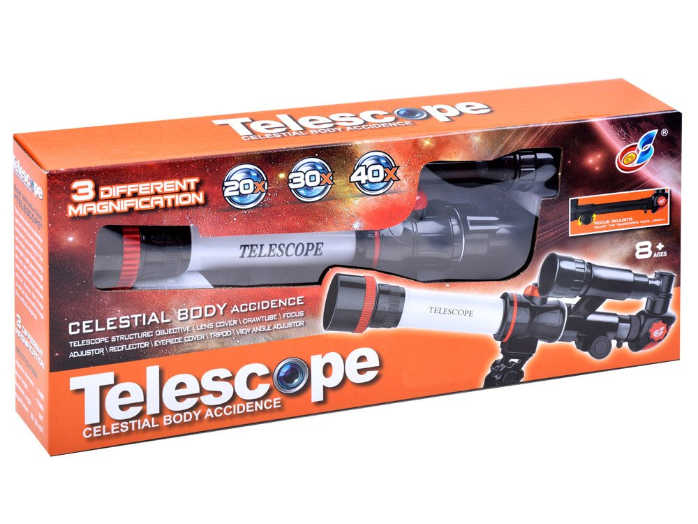 Dalekohled je vyroben z plastu, hliníkový stativ.